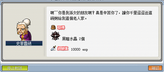 此任務可直接免費領取兩顆(若自己製作一顆需要一百萬楓幣+10個黑暗母礦)