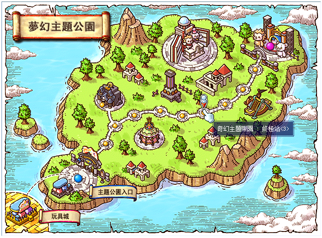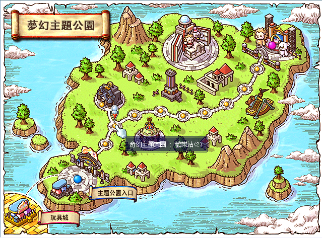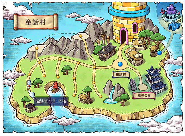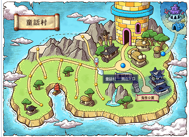 奇幻村 → (隱藏入口)森林迷宮I → 迷宮II → 迷宮III → 迷宮IV → 迷宮V → (隱藏入口)巨人之林